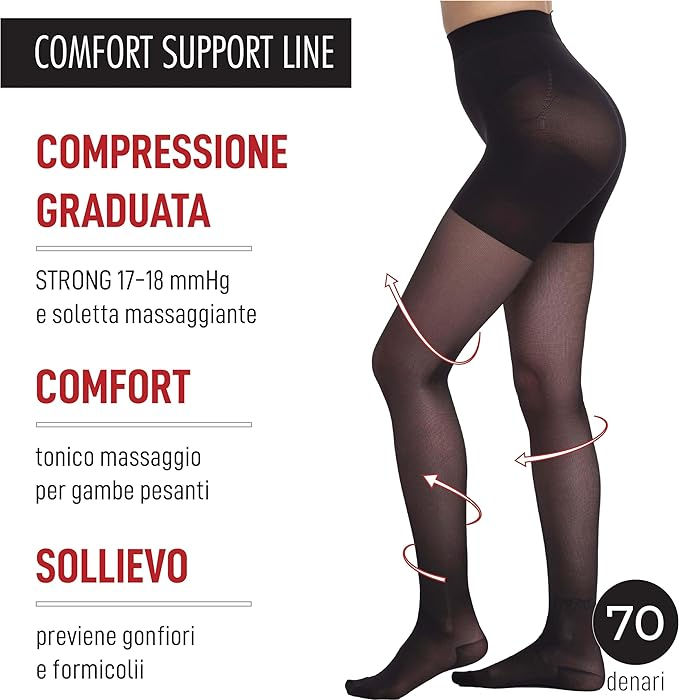 BeOnTop SUPPORT Line è stata studiata e creata a fronte della lunga esperienza nel settore delle calze riposanti. Il design accattivante ed il comfort assoluto, soddisfano le esigenze del mondo femminile che desidera porre rimedio ai fastidi causati da una non perfetta circolazione. Indossando i prodotti della linea BeOnTop le gambe beneficeranno di un reale sollievo grazie alla continua azione massaggiante mediante la compressione graduata sulle gambe. La nuova maglia a costine sottilissime brevettata, consente di ottenere una maggiore compressione mantenendo un aspetto “invisibile” … nessuno si accorgerà che le calze indossate sono a compressione! BeOnTop sarà il vostro alleato di bellezza “segreto” per essere sempre al top!